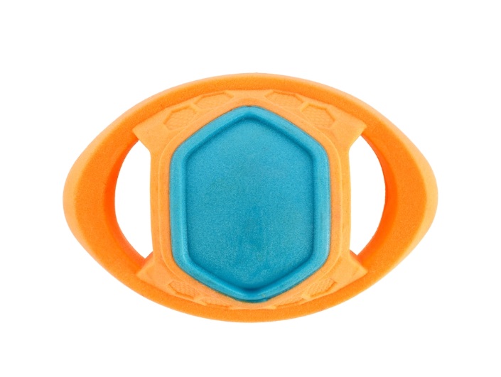Kelluva ja hyvin pomppiva TPR-pallo, joka sopii loistavasti kesän vesileikkeihin. Pallossa reikä, johon voi halutessaan kiinnittää köyden tai narun varmistaakseen ettei pallo karkaa. Lelu myös vinkuu. Lelun koko on noin 13 x 8,5 x 7,5 cm.