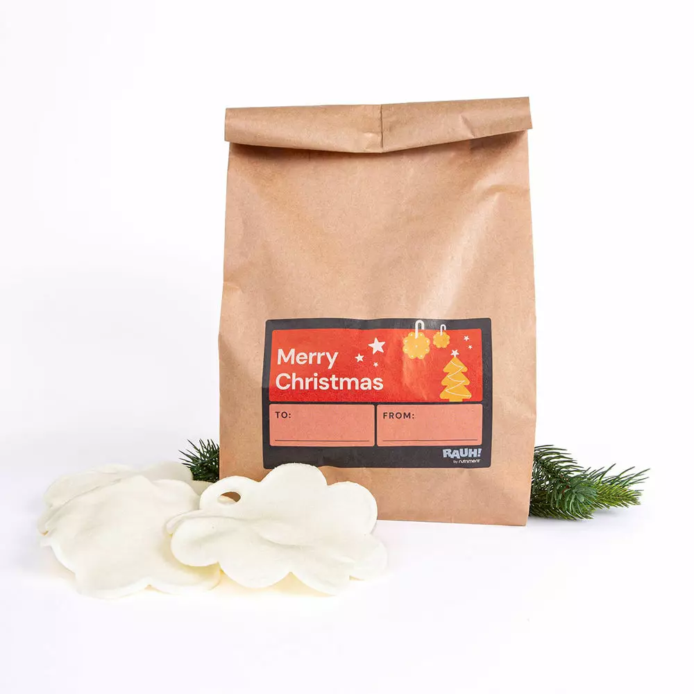Joulupipari on suunnattu erityisesti pienelle koiralle. Sen litteä muoto helpottaa pureskelun aloitusta.