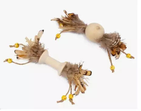 Kaunis Best Friend Wood Roller kissan lelu on valmistettu täysin luonnonmateriaaleista. Pehmeät höyhenet, rapiseva niini ja puiset pikkuhelmet houkuttelevat kissan leikkiin - tätä lelua on ihana vaania ja jahdata! Lelun koko 17 cm. Lajitelma erilaisia leluja.