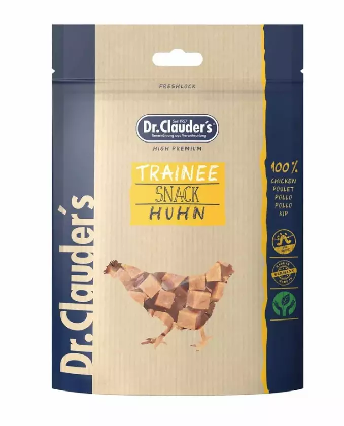 Dr. Clauder's Trainee Snack Medium Chicken sisältää 95 % herkullista kananlihaa.