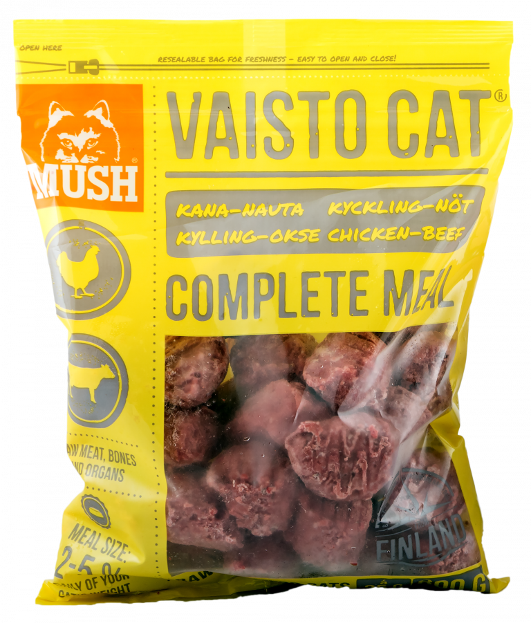 MUSH Vaisto Cat Keltainen kana-nauta on ravinteikas kissojen täysravinto, joka sopii niin kissanpennuille, aikuisille kuin tiineillekin kissoille. Vaisto Cat Keltainen sopii hyvin myös raakaruokintaa aloittavalle kissalle! Yksi pulla painaa noin 25g.