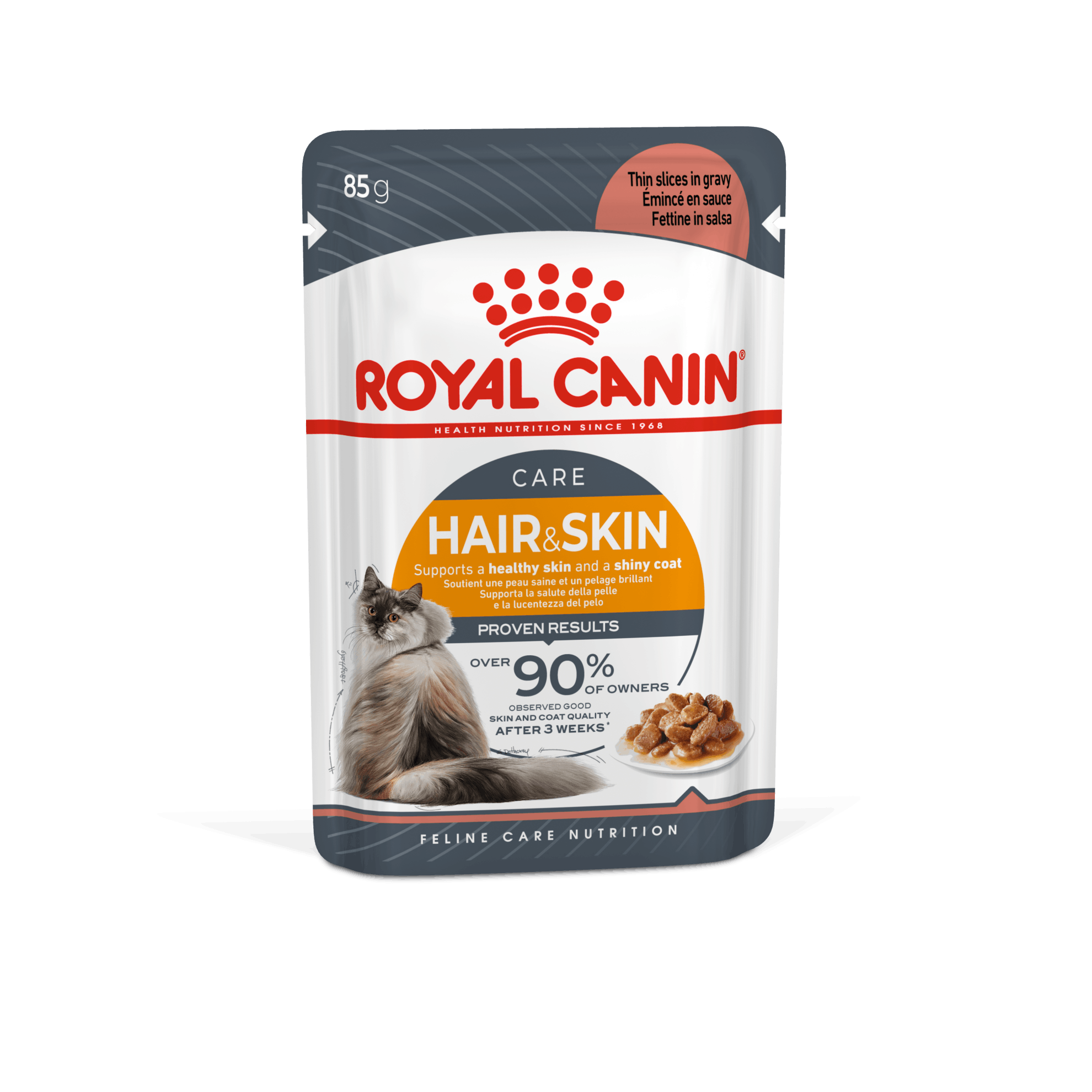 Royal Canin Hair & Skin Care Gravy kissojen märkäruoka, joka edesauttaa ihon ja turkin hyvinvointia.