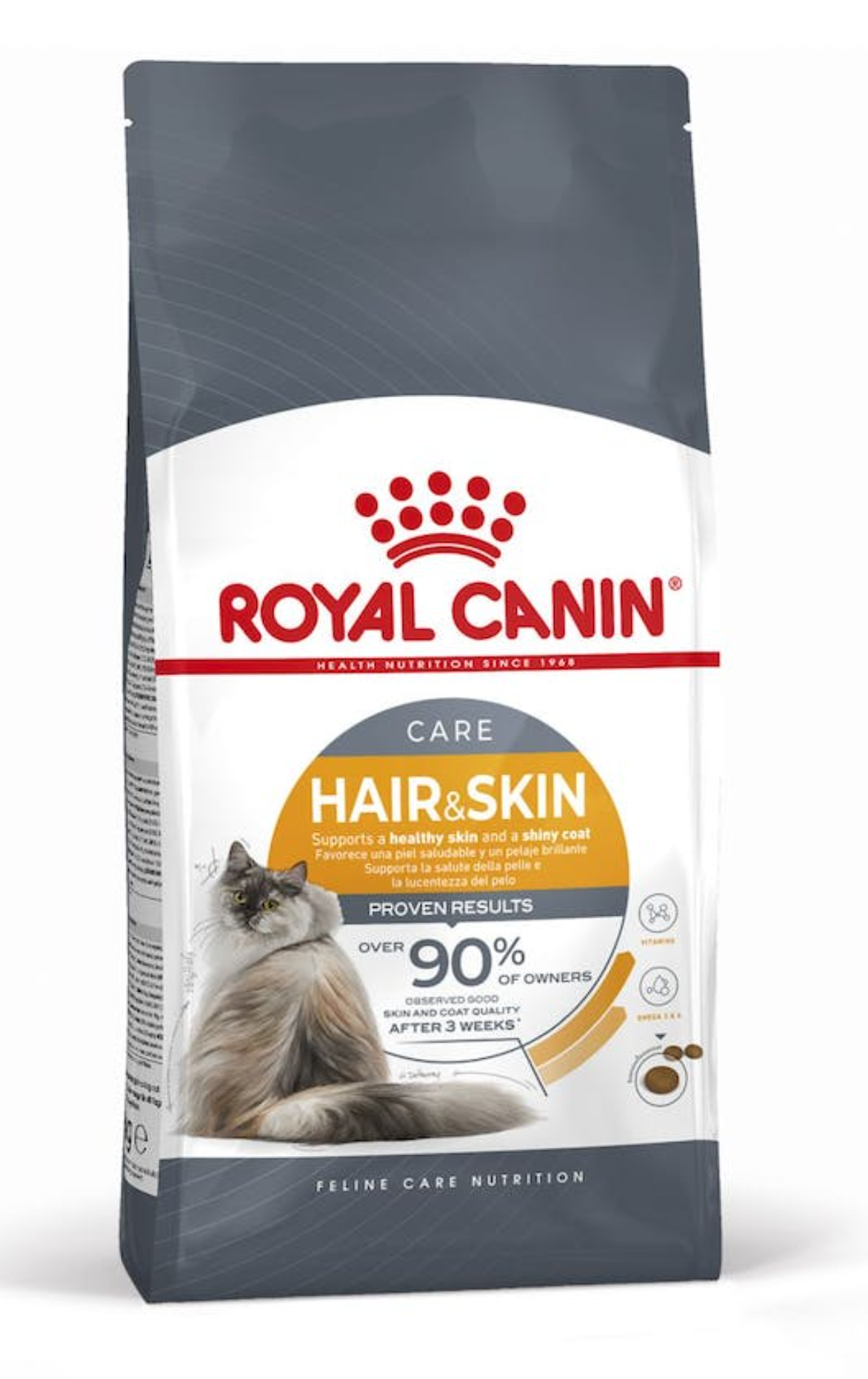Royal Canin Hair & Skin Care on aikuisten kissojen täysravinto, joka erityisesti auttaa tukemaan ihon hyvinvointia ja turkin kiiltoa.