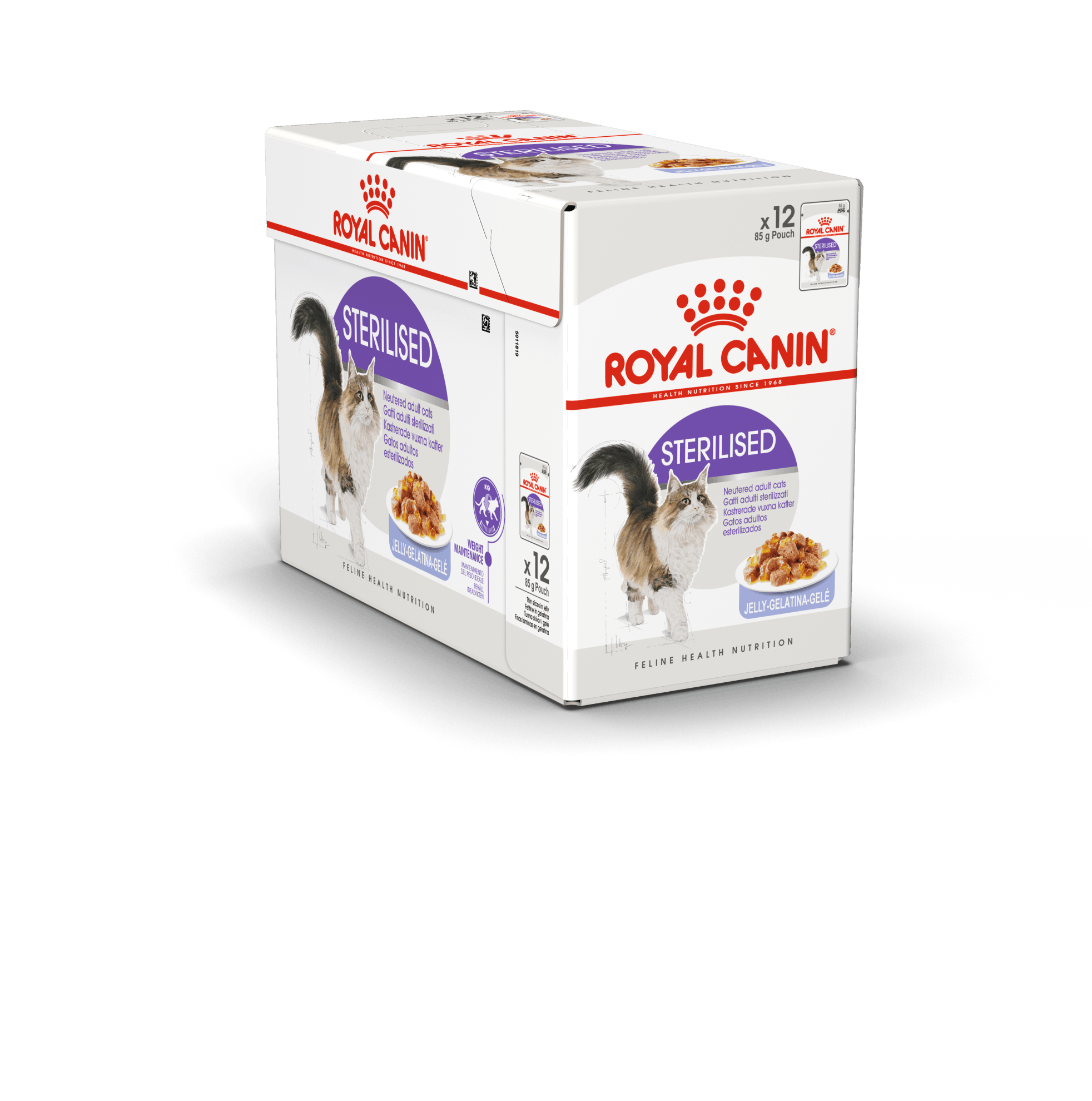 Royal Canin Sterilised Jelly on kissojen täysravinto, joka vastaa leikattujen kissojen ravintotarpeisiin. Tarkoitettu aikuisille kissoille.