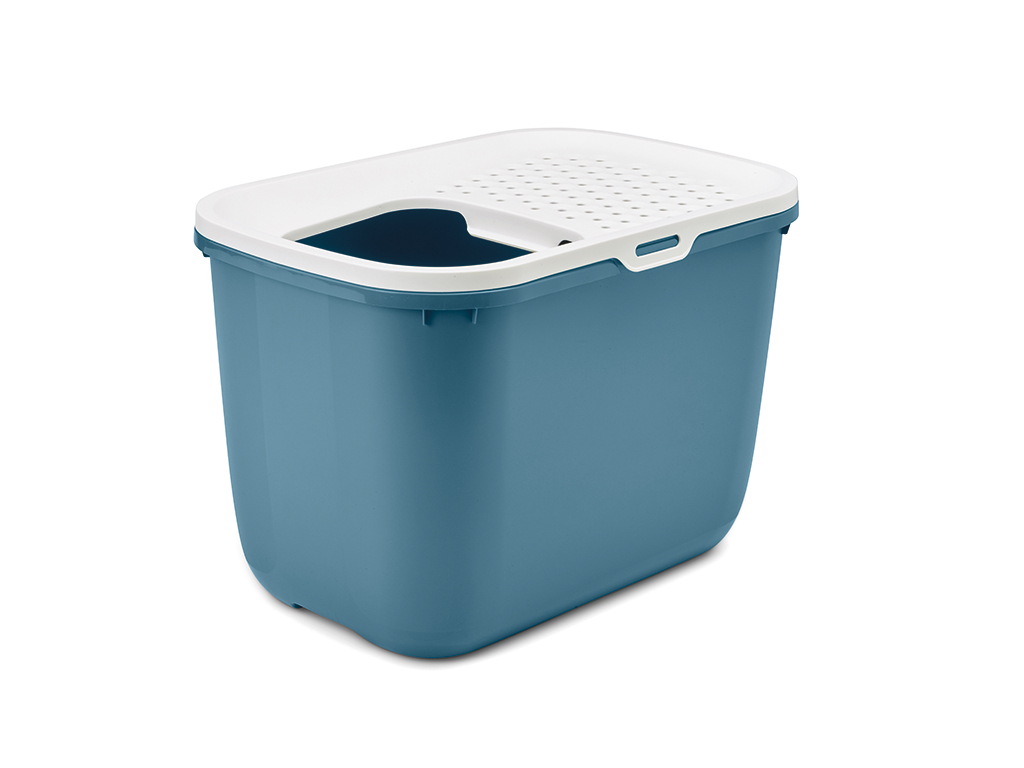 Tärkeä ominaisuus laatikossa on rei´itetty, hieman viisto kansi. Kun kissa hyppää poistuessaan kannen päälle, tassuihin tarttunut kissanhiekka putoaa pienistä rei´istä takaisin sisälle. Siksi ympäristö pysyy puhtaana ja siistinä. Suuri aukko kannessa mahdollistaa helpon pääsyn ja poistumisen, mikä tekee Hop-In täydelliseksi myös suuremmille kissoille.
