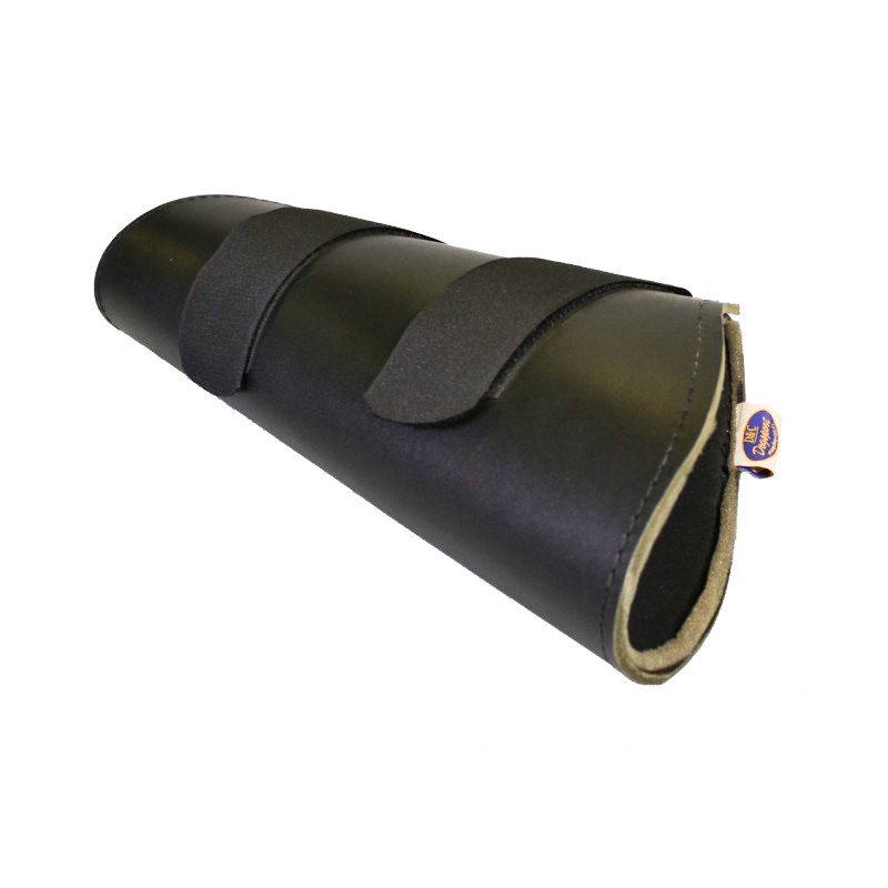 Jämäkässä nahkaisessa käsisuojassa on kaksi pitävää tarrakiinnitystä ja sen sisäpuoli on pehmustettu.