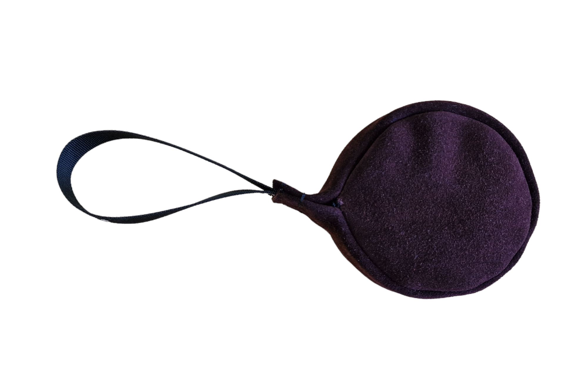 Mokkanahka-materiaalista valmistettu kiekkopallo, joka sopii mainiosti esimerkiksi kainalopalkaksi.