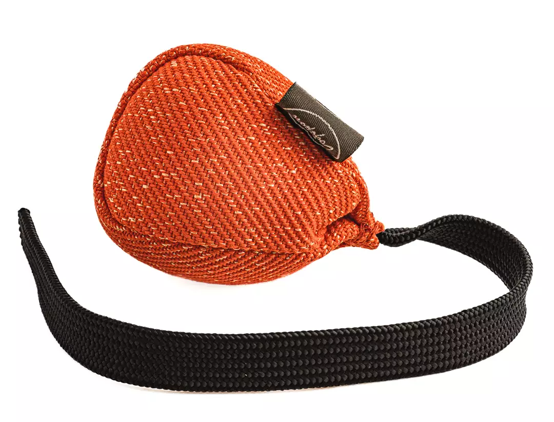 Tämän pallon koko on noin 8 x 11 cm ja siinä on noin 35 cm pitkä ja 2 cm leveä, suora nylon-nauha, jonka avulla se on helppo heittää koiralle. Kokonsa puolesta se sopii erinomaisesti kainalopalkaksi: sen saa helposti kainaloon piiloon, kun palkkaa aletaan häivyttämään seuraamisessa pois näkyvistä! Ringo pallo sopii palkaksi tottikseen, agilityyn, hakumetsään tai mihin vain, missä haluat palkita koiraasi hienosta suorituksesta! Tätä pehmeää palloa käytettäessä on kuitenkin muistettava, etteivät ne kestä aikuisten koirien taisteluleikkejä. Aikuisille koirille suosittelemme esimerkiksi Pro Syntek -palloa.