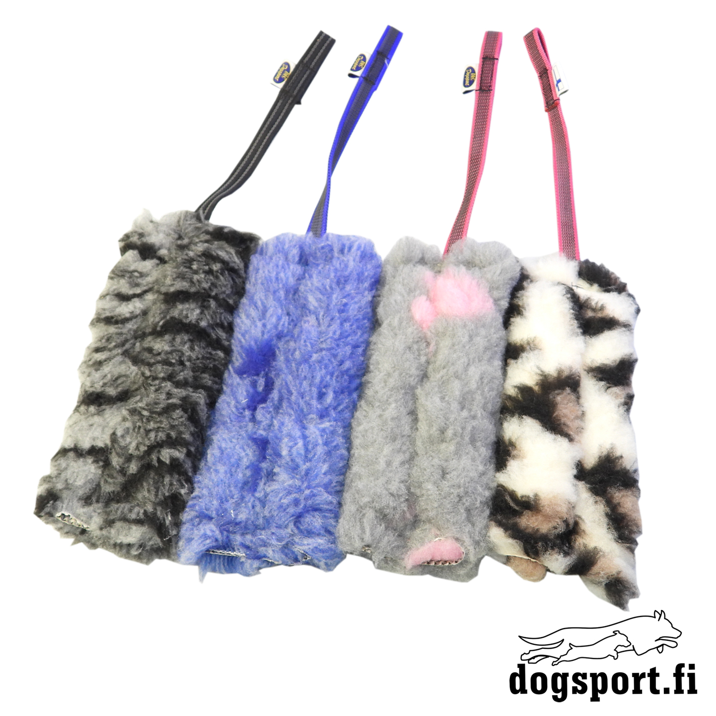 Patukka on miellyttävän pehmoista teddykarvaa. Siinä on suora supergrip-kahva, josta ohjaajan on hyvä pitää kiinni. Kahvan päässä on pieni lenkki saalisnarua varten. Saalisnarun avulla saat tehtyä isompaa saalisliikettä maata pitkin, jolloin huonomminkin leikkivä koira helpommin innostuu saalistamaan lelua!