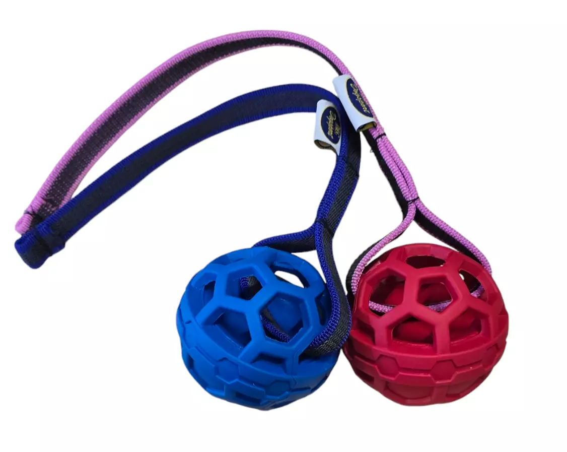 Tämä pallo on puoliksi kiinteää kumia jonka puolelta löytyy vinku ja puoliksi verkkopallo, johon voi laittaa herkkuja. Näin ollen pallo toimii sekä hauskana vinkupallona että aktivointileluna.