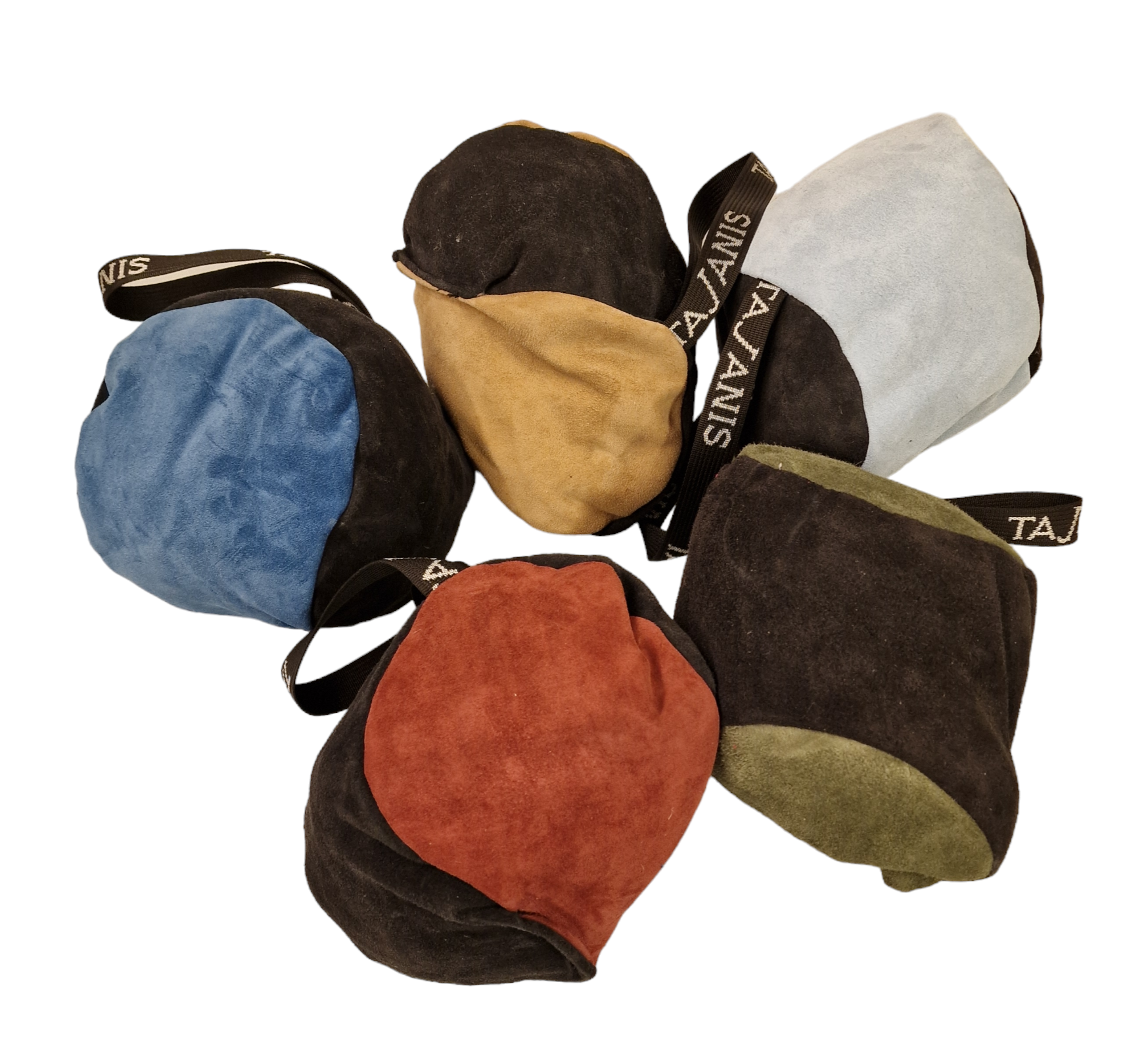 Pallo on valmistettu pehmeästä mokkanahasta ja siinä on yksi kahva joka helpottaa pallon heittämistä.