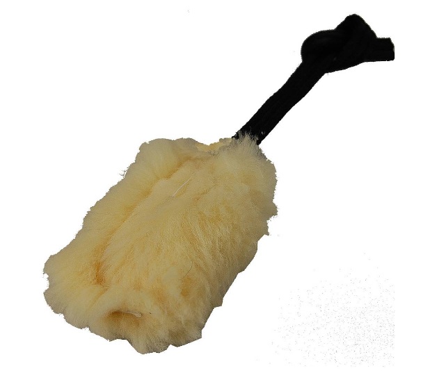 Lampaankarvapatukka nauhalla on aidosta lampaankarvasta ommeltu pieni patukka, jonka päässä on 20 mm leveä nylonnauha.