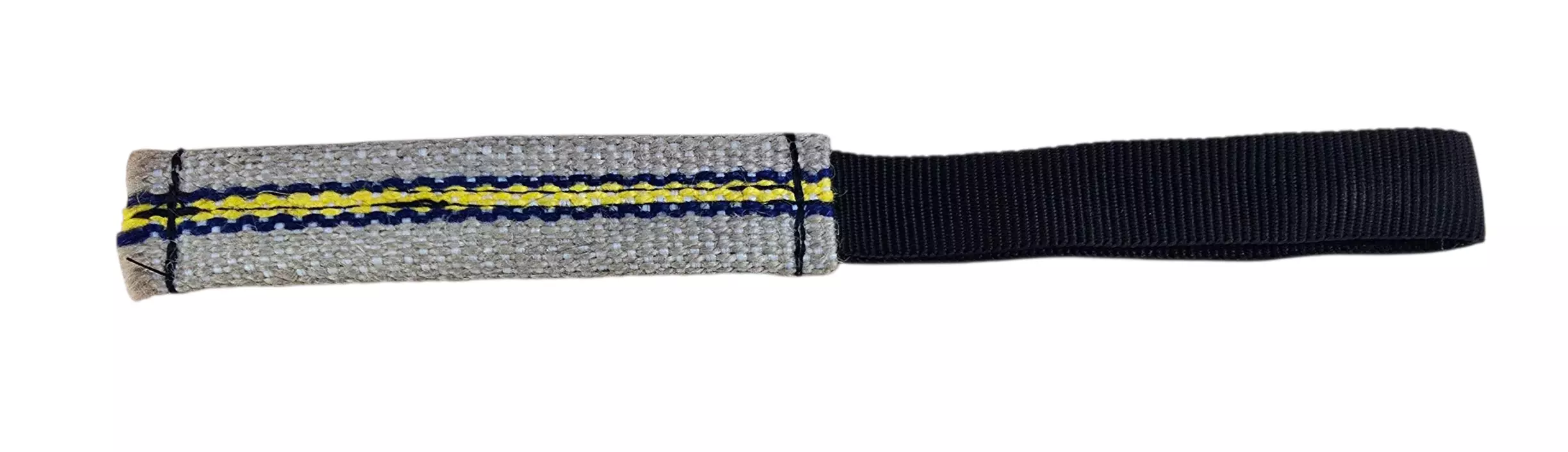 Juuttinen jälkiesine kahvalla. Tämän esineen avulla voit motivoida koiran esineilmaisua saalisvietin kautta.