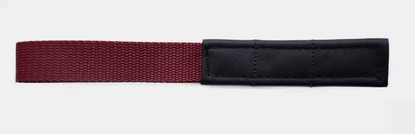 Nahkainen jälkiesine kahvalla. Tämän esineen avulla voit motivoida koiran esineilmaisua saalisvietin kautta.