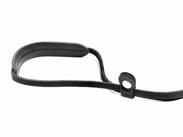 Nahkainen näyttelytalutin leveällä kaulaosalla ja kierteenpoistajalla.