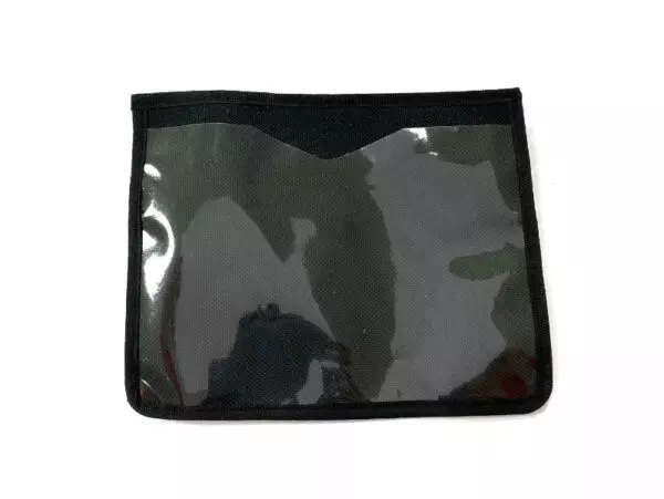Käsivarteen helposti puettava numerolapputasku. Muovisuoja suojaa numerolappua sateelta.