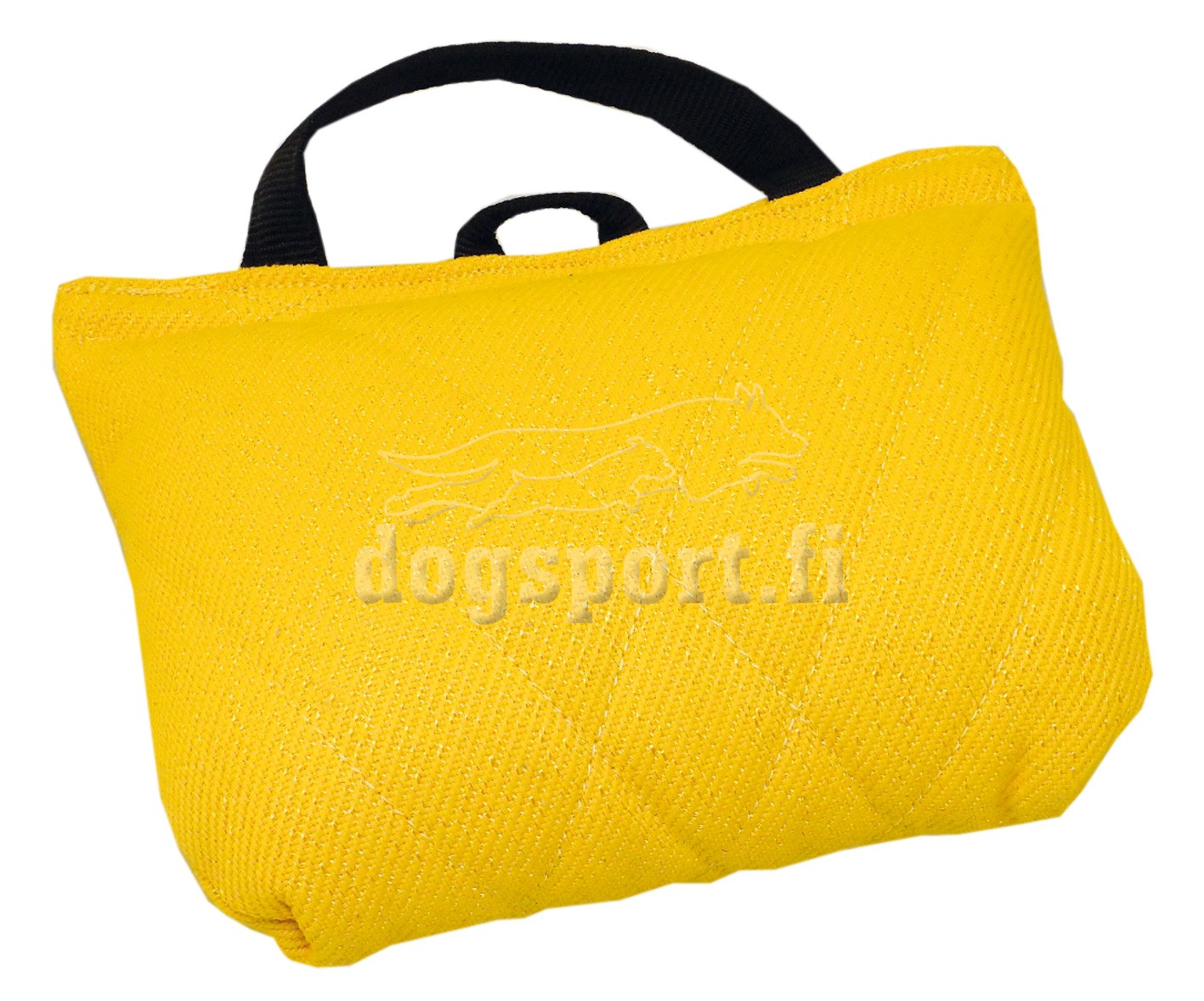 Tämä purutyyny on pullea ja kovuudeltaan pehmeähkö. Isokin koira saa tyynystä mukavasti täytettä suuhunsa. Tyynyn mitat ovat noin 28 x 22 x 11 cm. PRO Syntek purutyynyssä on yksi kahva sekä pieni lenkki saalisliinaa varten.