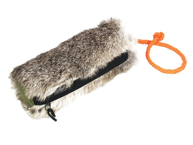 Tämä penaalia muistuttava lelu on valmistettu nylonkankaasta ja sen sisäpuoli on enstexiä, minkä ansiosta se on helppo puhdistaa. Nylonkankaan päälle on ommeltu kaninkarvaa koko penaalin mitalta. Lelussa on naru, mikä helpottaa sen heittämistä. Narun saa halutessaan myös pois.