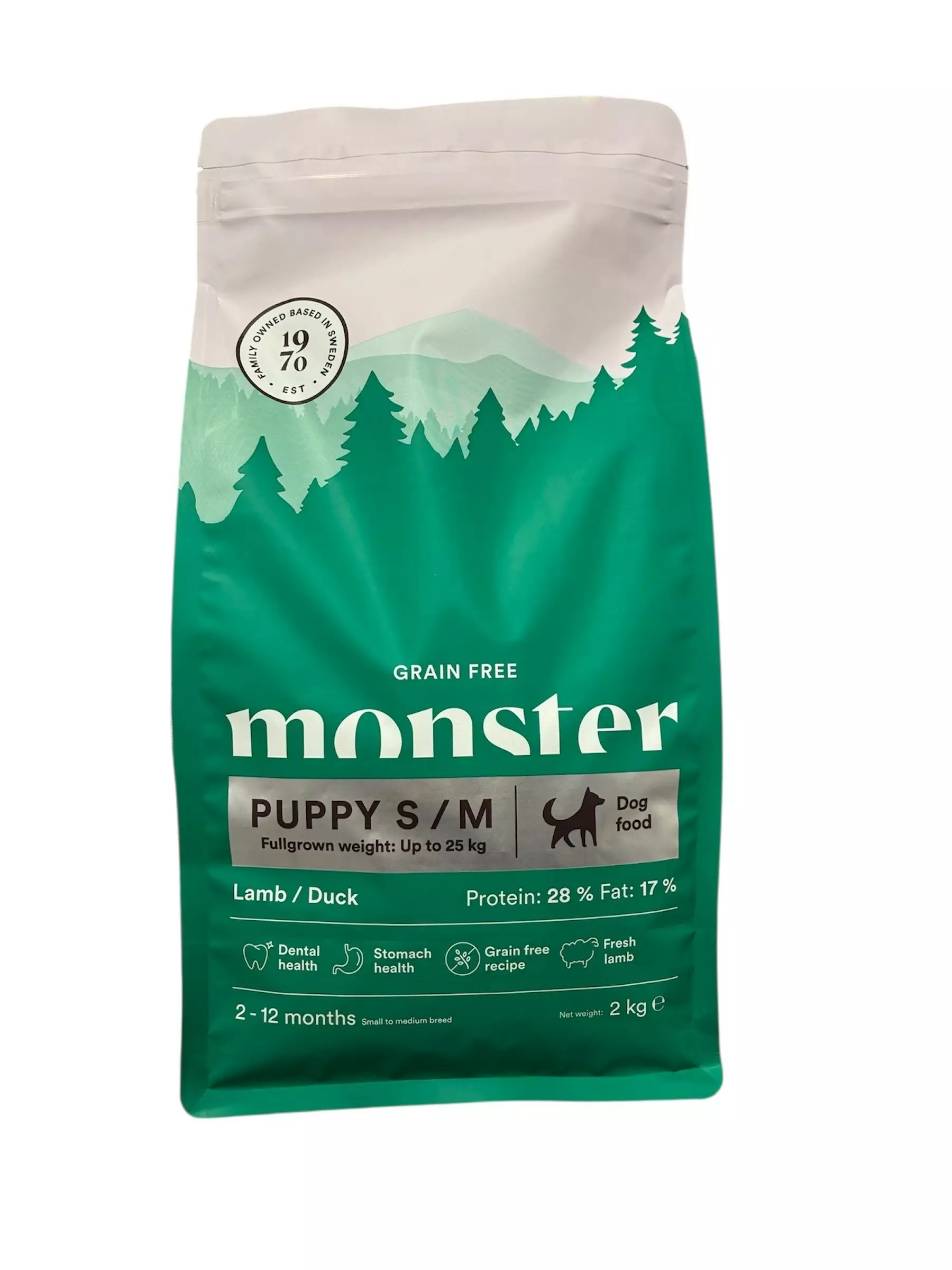 Monster Dog Grain Free Puppy S/M Lamb/Duck viljaton koiranpennun kuivaruoka 2 kg