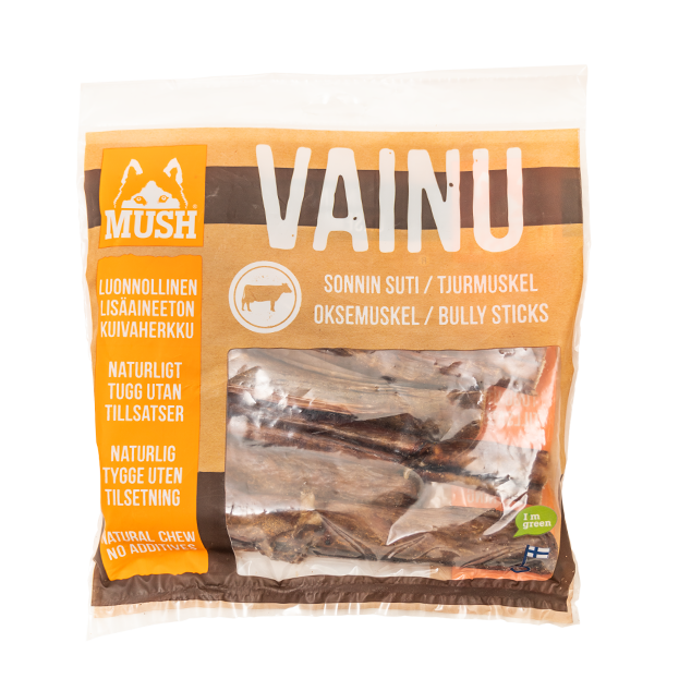 Kotimainen sonnin suti on lisäaineeton ja luonnollinen herkku, jonka voi antaa koiralle ajanvietteeksi ja maistuvaksi pureskeltavaksi.