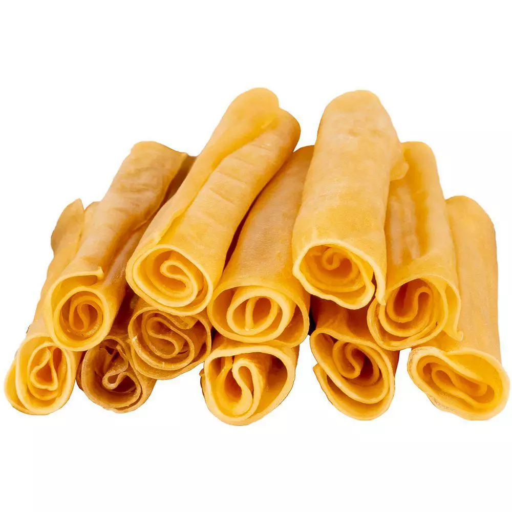 Valkaisemattomasta saksanhirvennahasta rullattu puruluu koirille.