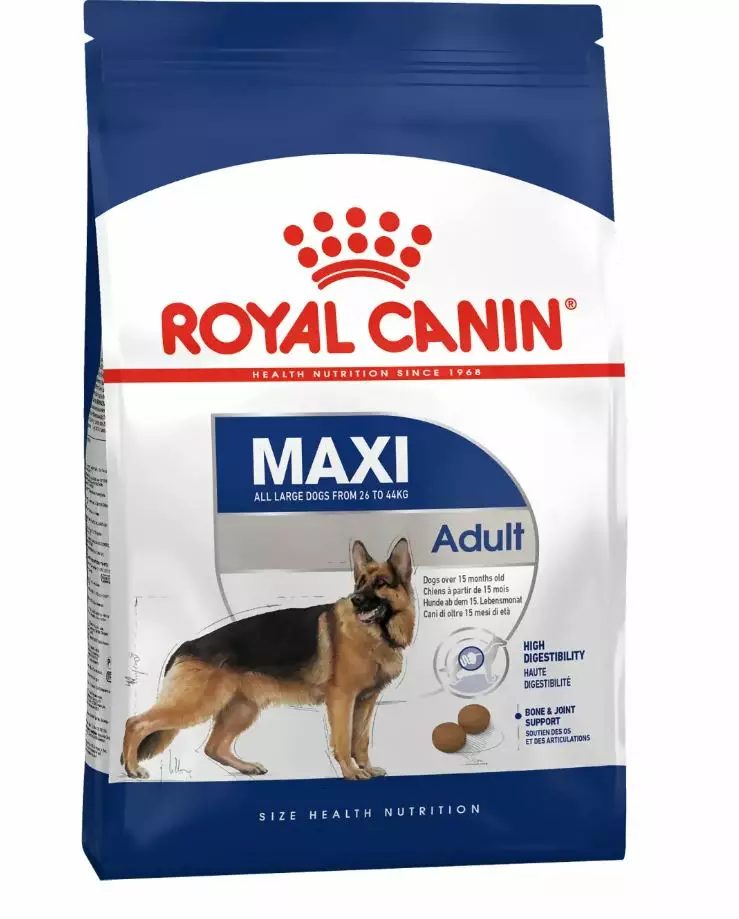 ROYAL CANIN Maxi Adult -kuivaruoka on suunniteltu erityisesti suuren koiran ravitsemustarpeita ajatellen. Tämä ruoka sopii yli 15 kuukauden ikäisille isoille koirille, jotka painavat täysikasvuisena 26–44 kg.