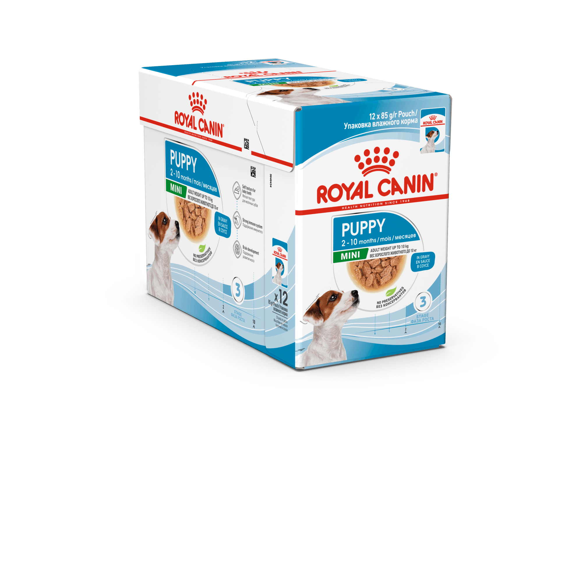 Royal Canin Mini Puppy Wet Gravy märkäruoka on suunnattu alle 10 kk ikäisille, pienikokoisille pennuille.