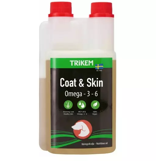 Ihoa ja turkkia ravitseva öljy, joka sisältää välttämättömiä omega-3 ja -6 rasvahappoja, MCT- öljyjä ja lesitiiniä.