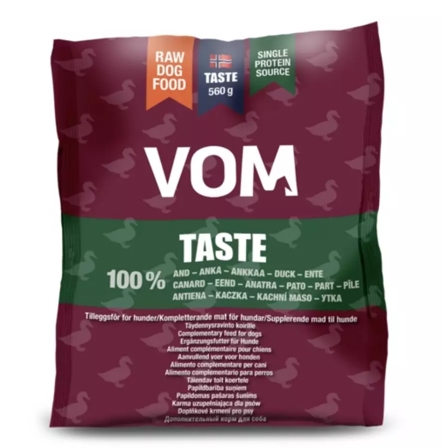 VOM Taste Ankka on erittäin korkealaatuinen ja koirien mielestä vastustamattoman herkullinen raakaruoka, joka sisältää pelkkää ankkaa. Runsaasti hyvin imeytyviä rasvoja ja proteiinia sisältävä Taste Ankka on erinomainen lisä aktiivisten koirien monipuoliseen raaka- ja sekaruokintaan.