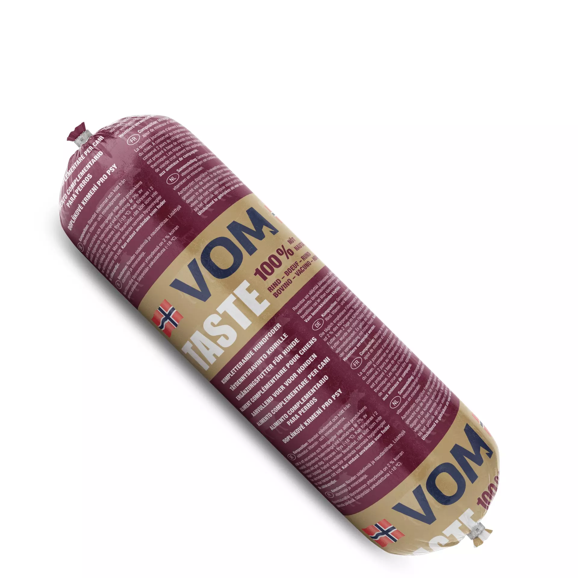 VOM Taste nauta soveltuu käytettäväksi osana monipuolista raakaruokintaa sekä lisukkeeksi muun ruoan oheen. Voidaan käyttää myös pääasiallisena ravintona esimerkiksi ruoka-aineallergioista kärsivillä koirilla. Raakaruoka 100 % nautaa.