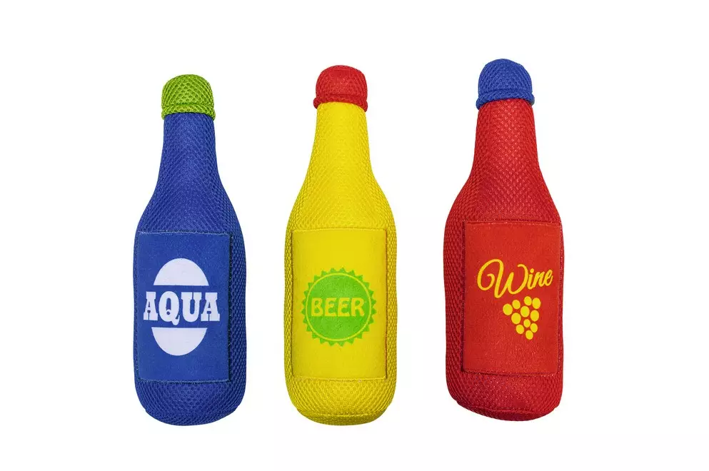Hauska drinkkipullon muotoinen pehmolelu. Tämä lelu kelluu, joten se sopii loistavasti myös vesileikkeihin.