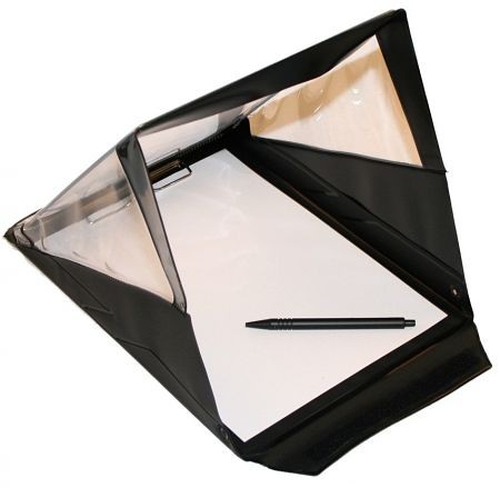 Tämän arvostelukansion sisällä pysyvät paperit kuivana vaikka sade yllättäisikin.