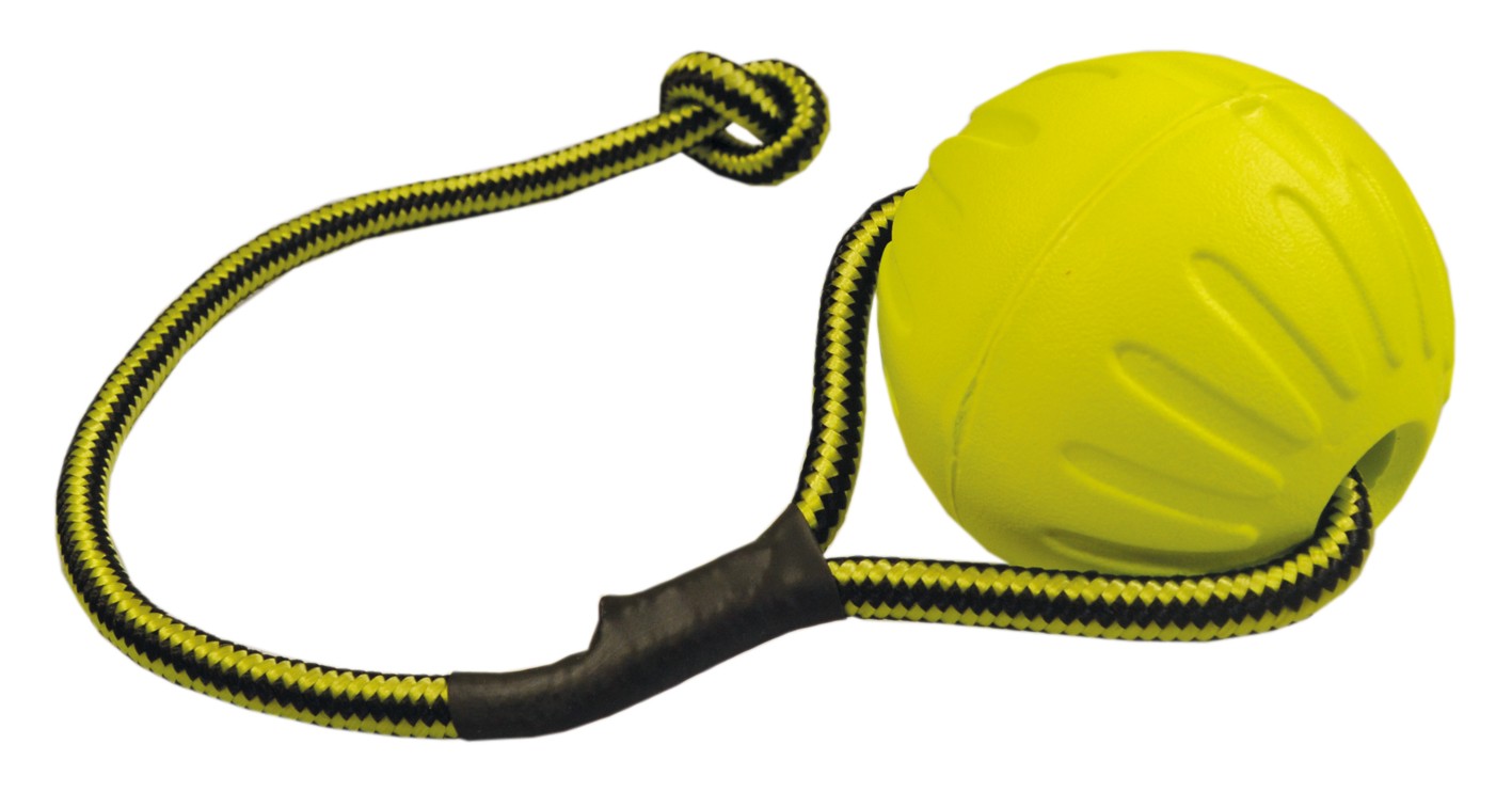 Joustavasta foam-materiaalista valmistettu narupallo, jota löytyy keltaisena, oranssina ja fuchsian värissä.