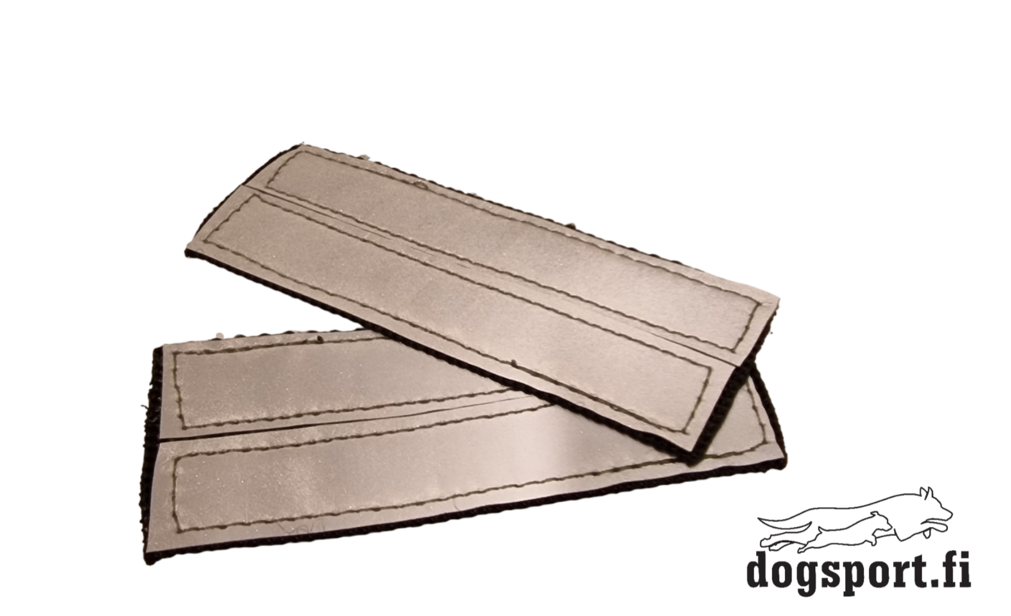Tarraheijastinpari kiinnitettäväksi esim. valjaisiin tai pantaan, joissa on paikka tarroille.