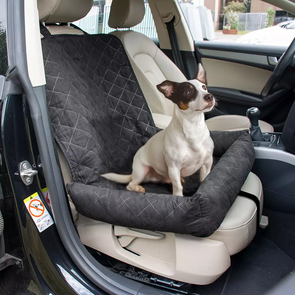 Huomaathan, ettei reuna estä koiraa putoamasta penkiltä auton pysähtyessä kovasta vauhdista ja koira tarvitsee turvavyön tämän penkinsuojan kanssa.