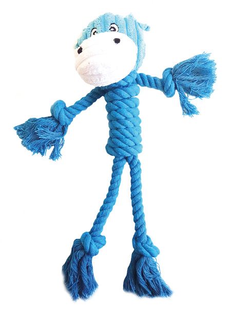Suloinen hippo köysilelu koirasi leikkihetkiin.