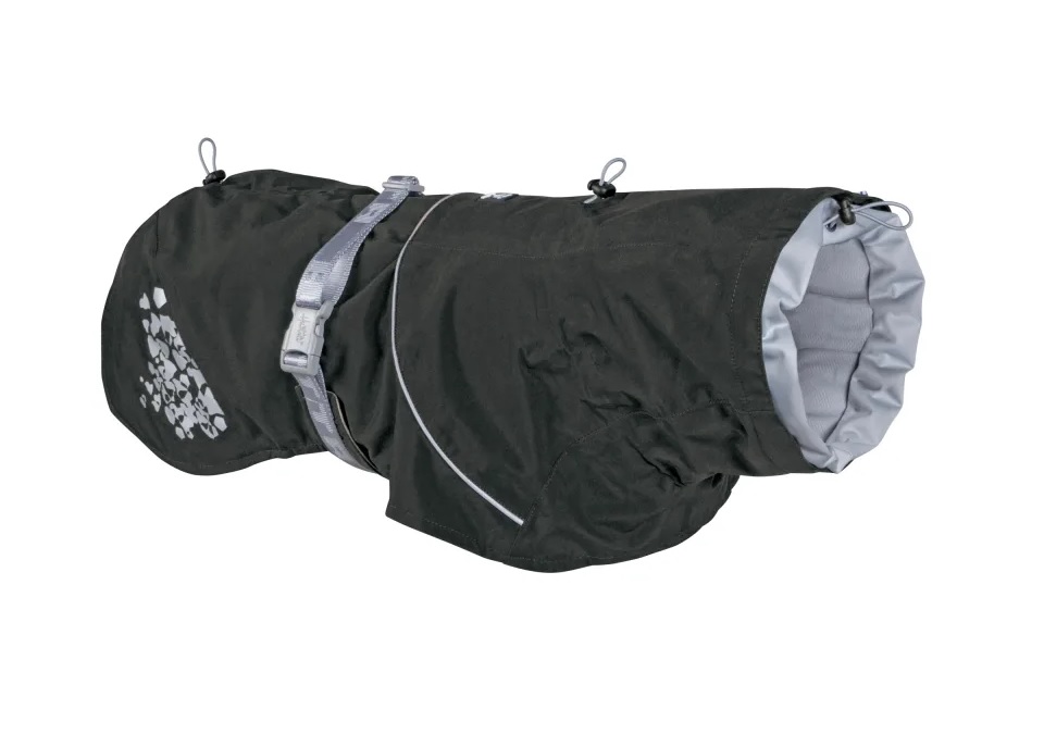 Takki suojaa tehokkaasti koiraa kastumiselta. Siinä on myös peittävä vatsakappale, joka suojaa koiran mahanalusta kuralta ja hiekalta. Takki on tehty vedenpitävästä, pehmeästä ja miellyttävästä materiaalista. Takissa on korkea kaulus, joka suojaa hyvin koiran kaulaa ja niskaa.