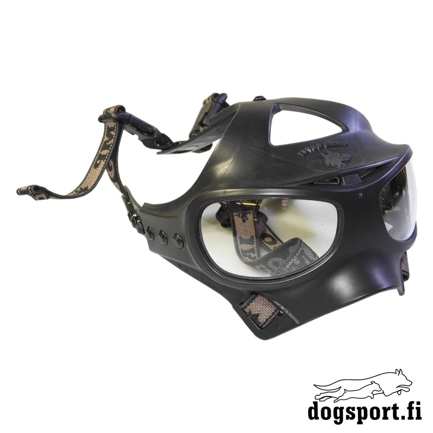 Suojalasit on helposti säädettävissä noin 20 - 45 kg painoisille koirille.