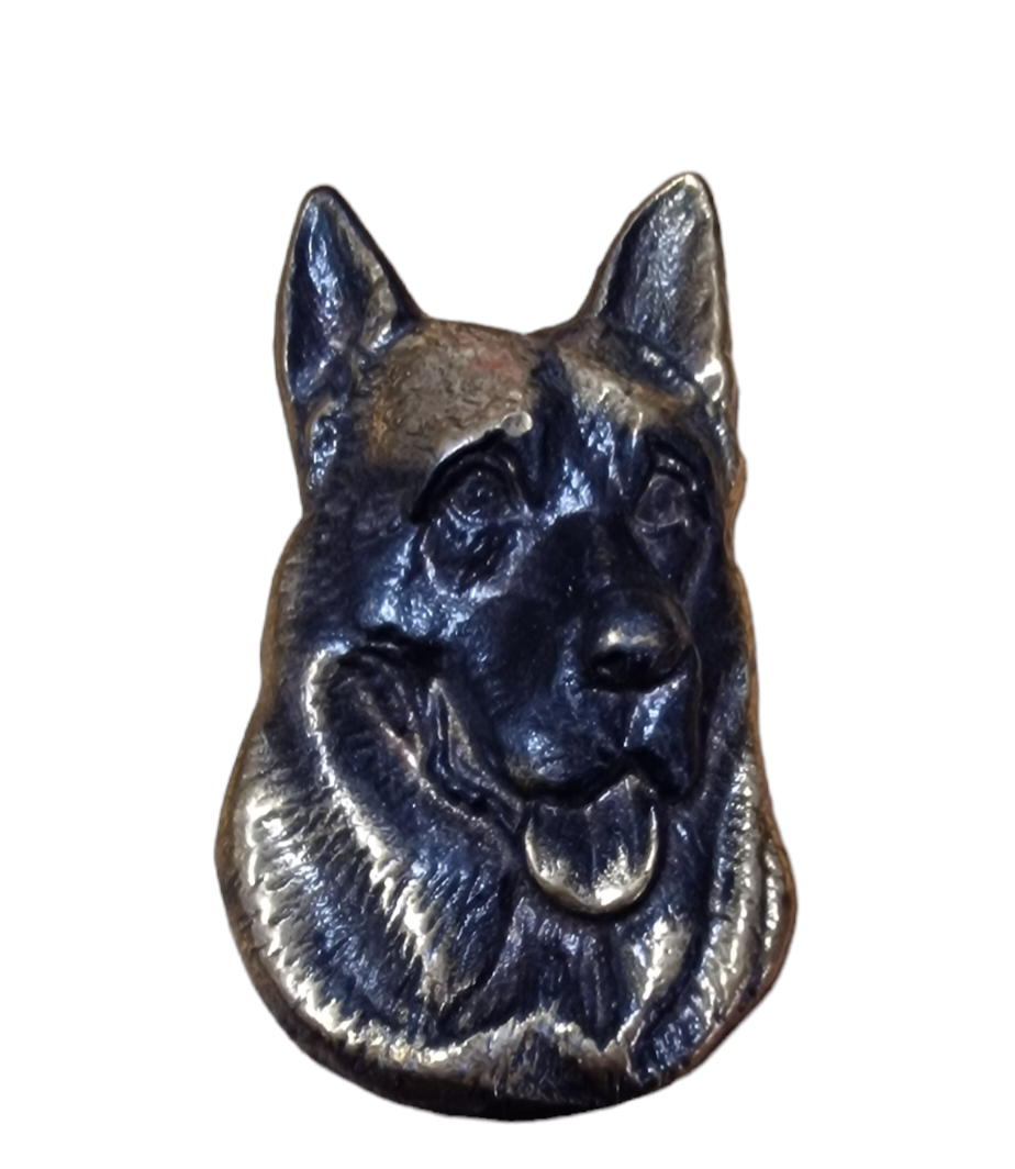 Upea patinoitua messinkiä oleva Saksanpaimenkoira figuuri.