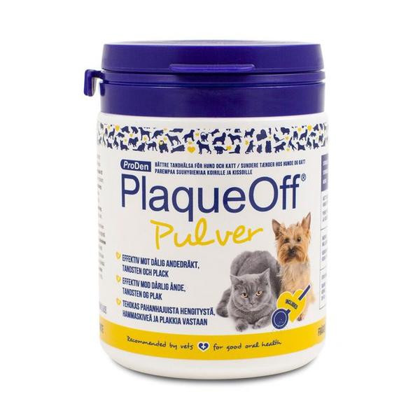 Plaque Off Pulver irrottaa hammaskiveä, ehkäisee plakkia, raikastaa hengitystä ja ylläpitää ikenien terveyttä.