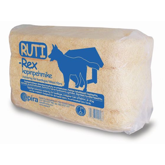 Luonnollinen ja puhdas pehmuste koirankoppiin. Poistaa tehokkaasti kosteutta ja on raikkaan puuntuoksuinen. Ulkokoppien eristeeksi, ehkäisee kovettumia. Ruti-Rex on käytössä hyväksi havaittu, on riittoisa ja sillä on laaja käyttäjäkunta.