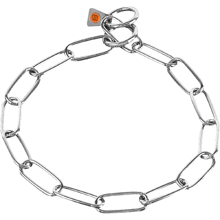 Tämä pitkälenkkinen ketjupanta soveltuu mainiosti esimerkiksi palveluskoirakokeisiin tai ihan treeneihin ja arkikäyttöön.