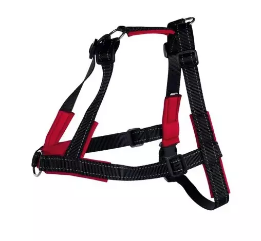 Valjaat on valmistettu polyesteristä ja pehmustettu neopreenilla, jotta ne tuntuisivat koiralle mahdollisimman mukavilta. Valjaissa on heijastava ommel. Valjaiden väri on musta (koko S-M musta/punainen) ja ne ovat 25 mm leveät. Valjaissa on muovinen pikalukko ja kaikki remmit ovat säädettävissä.