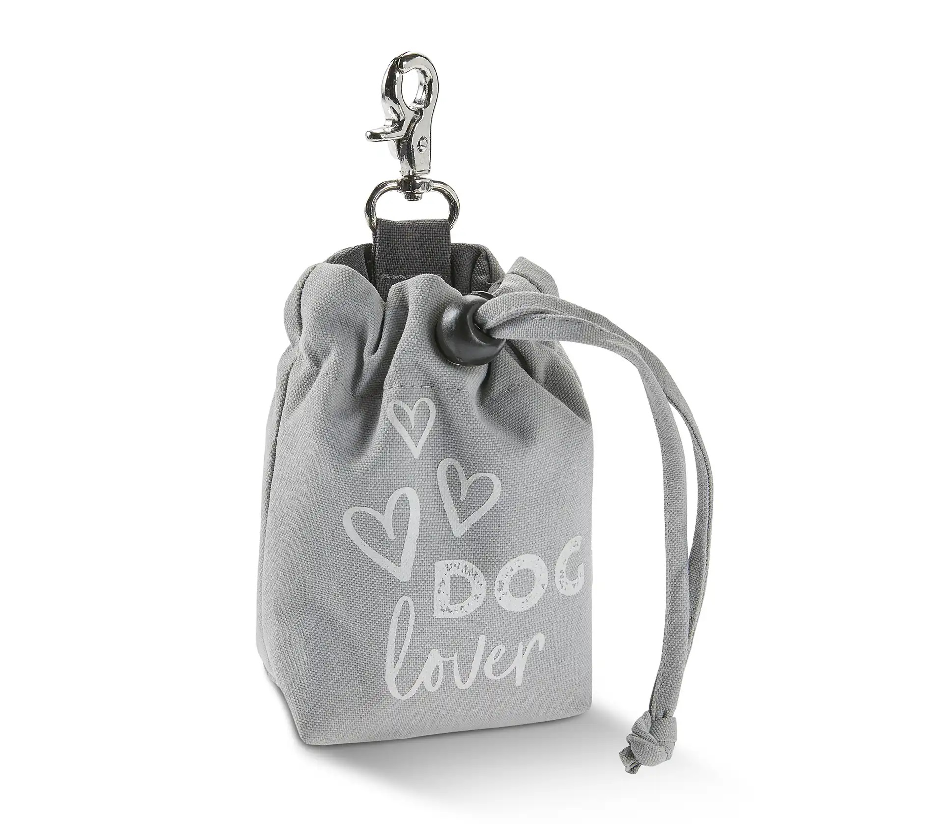 Tummanharmaa tekstillä LIVE, LOVE, WOOF