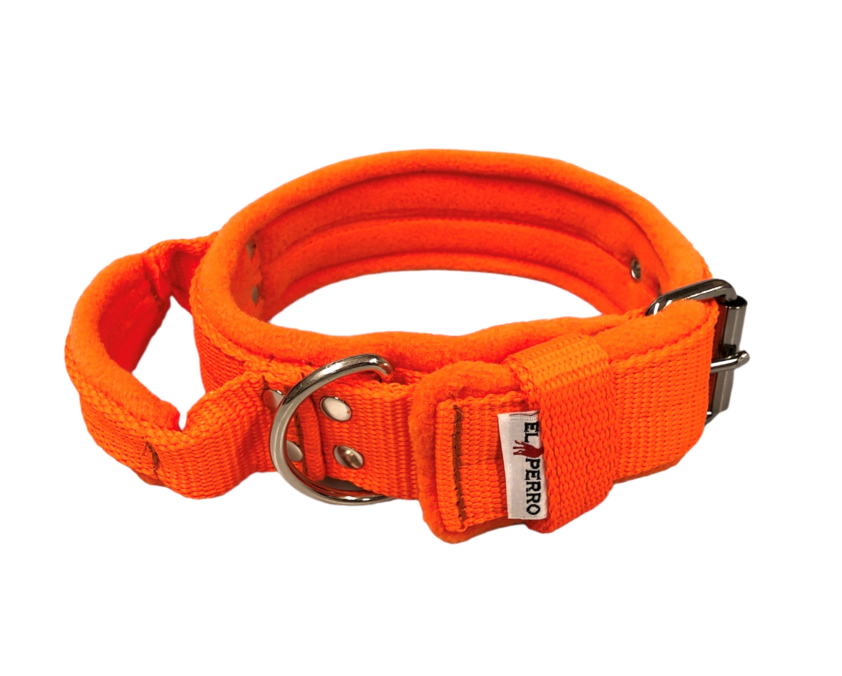 Näyttävä ja laadukas leveä nylonpanta jossa panta ja kahva on pehmustettu fleecellä, joka tekee pannasta miellyttävän tuntuisen sekä koiralle että ohjaajalle.